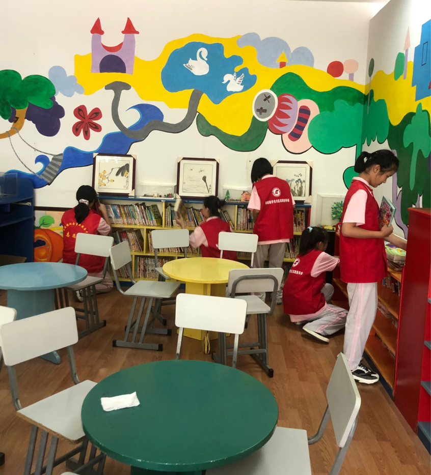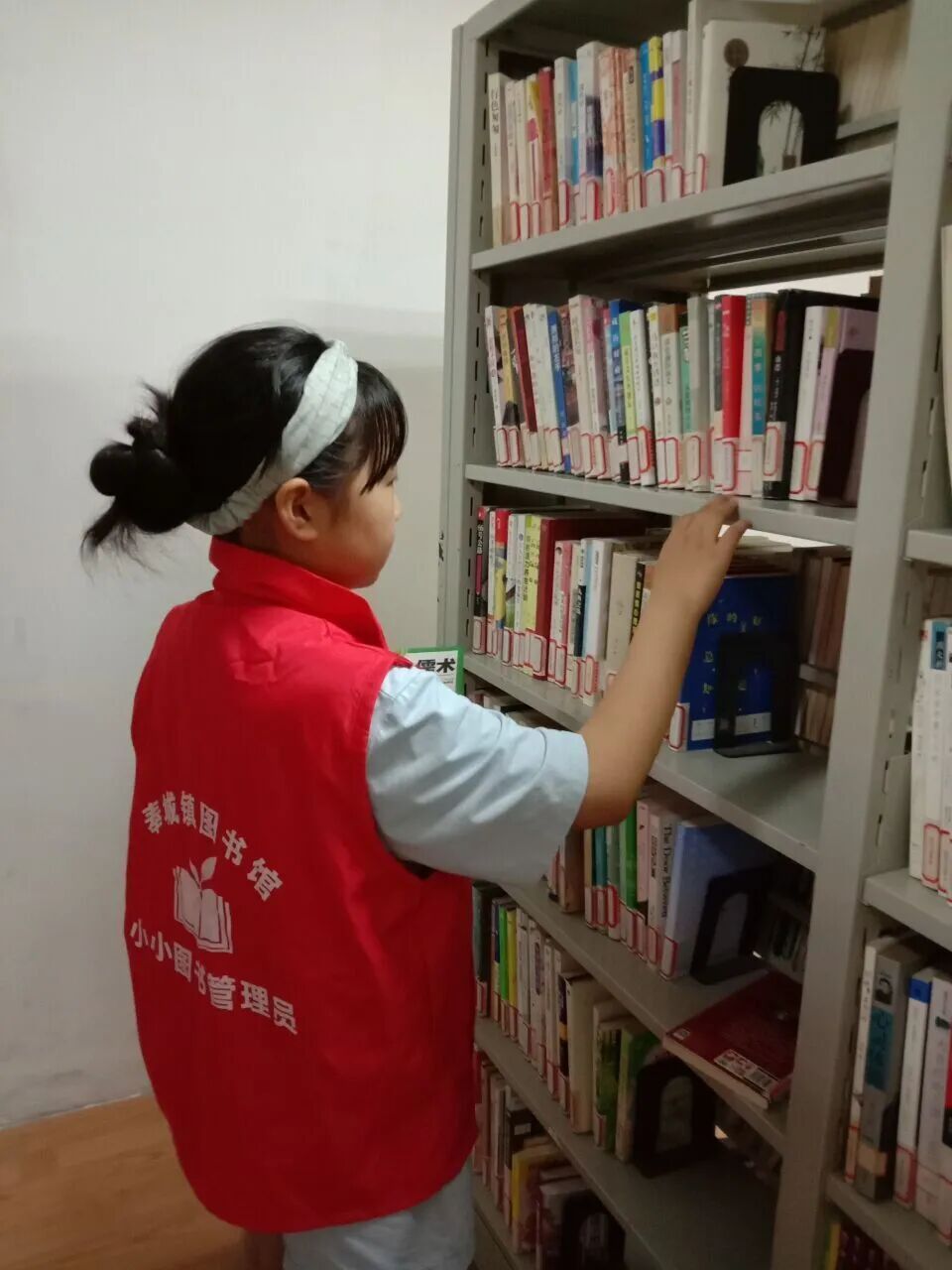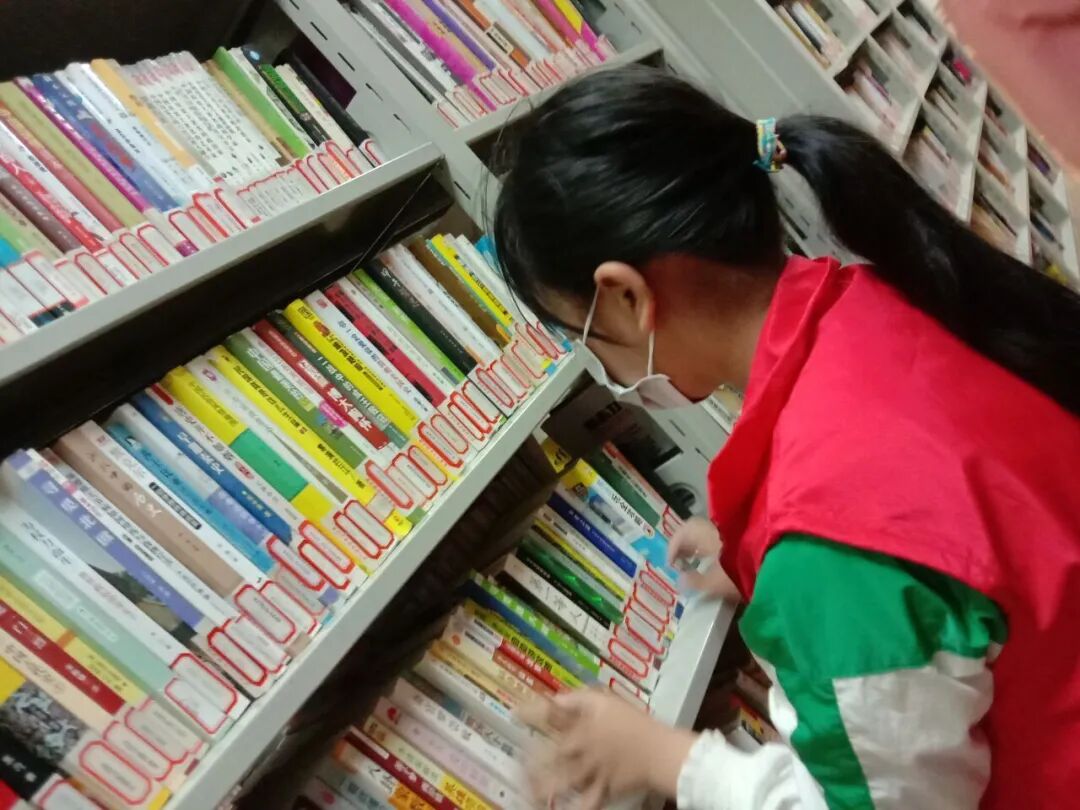 工作中,队员们互相帮助,干活也是一丝不苟,努力、认真地摆放好每一本书。在大家的齐心协力下,终于圆满完成了图书管理员的工作任务。