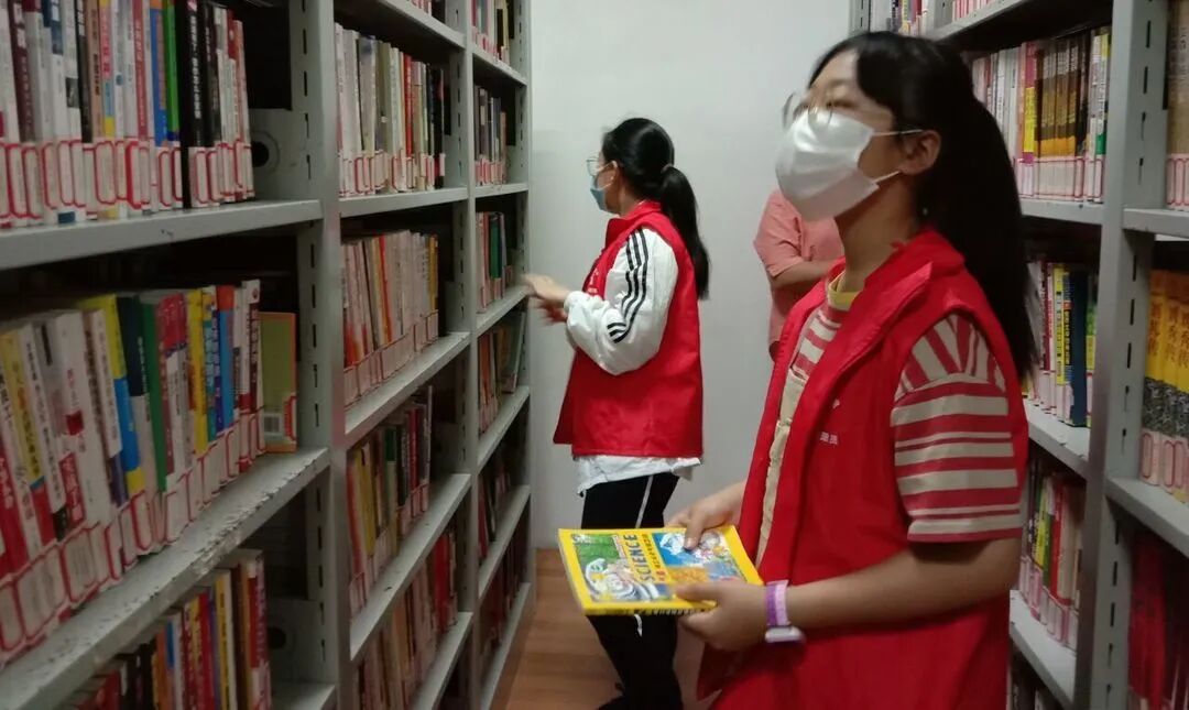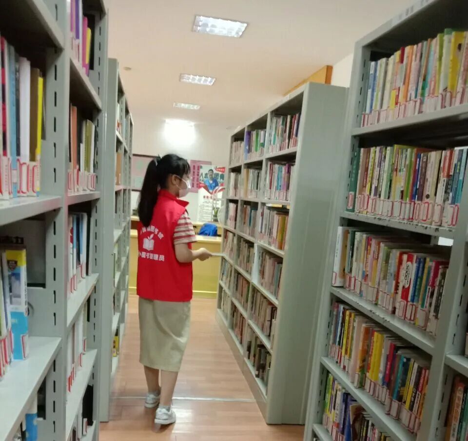 天气炎热,但丝毫不影响大家的似火热情。队员们准时到达图书馆,进行签到后穿上了红马甲,一下子就感觉自己是一名正式的图书管理员了。在工作人员耐心讲解了图书整理的要求后,大家认真开始了工作——整理书籍。