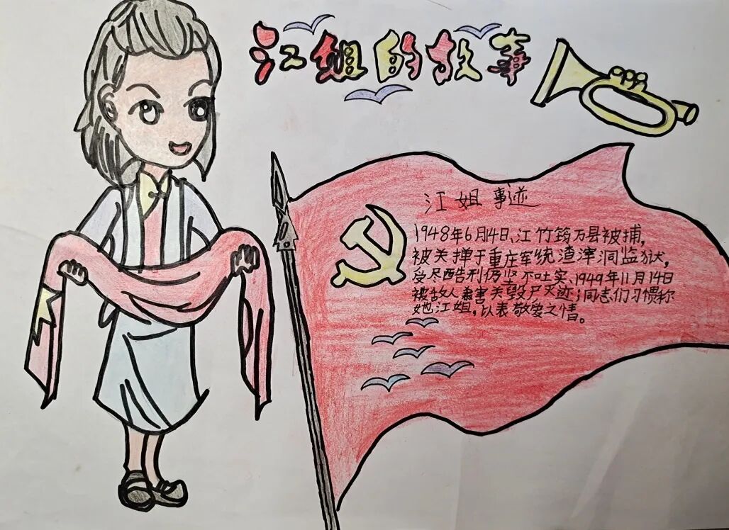江姐真是一位巾帼英雄!多少和江姐一样的革命先烈为建立新中国而奉献出宝贵的生命。我们要向江姐学习,学习她坚强的意志,学习她不畏艰难的革命精神。我们要格外珍惜现在来之不易的幸福生活,在学习的道路上肩负使命、奋勇向前,不辜负祖国的期望。