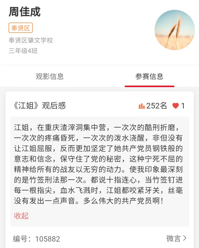 三年级的小朋友们和爸爸妈妈、爷爷奶奶一起观看了电影《江姐》,并推荐给大家。